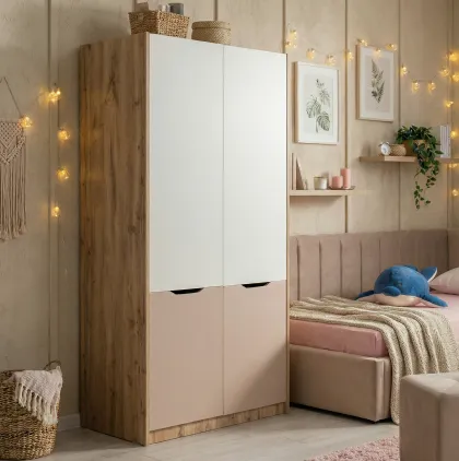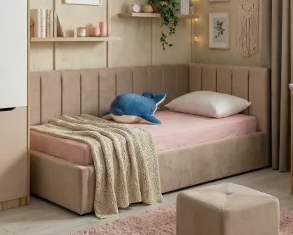 Коллекция выполнена в современном скандинавском стиле, где сочетаются функциональность, простота и уют. Основная палитра — мягкие пастельные оттенки: нежный беж, розовый, серый и белый. Эти цвета создают атмосферу тепла и спокойствия, идеальную для детской комнаты. Акценты в виде текстиля и декора добавляют яркости и индивидуальности.